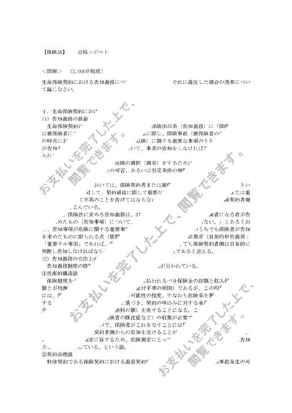 中央大学法学部 通信課程【保険法】合格レポート: 生命保険契約における告知義務と、違反した場合の効果