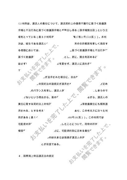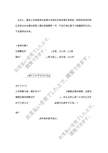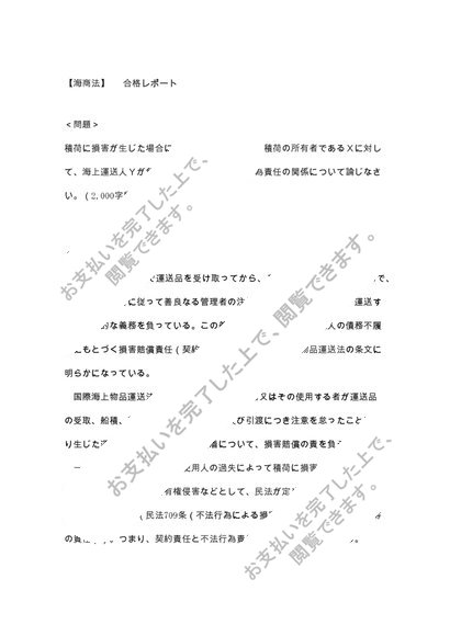 中央大学法学部 通信課程【海商法】合格レポート「運送人が負担する責任」