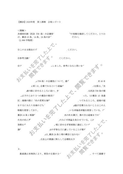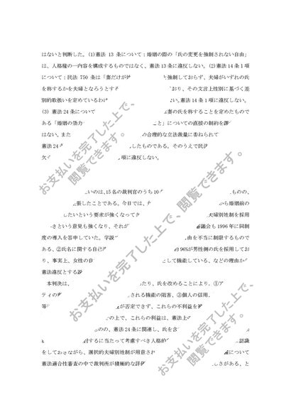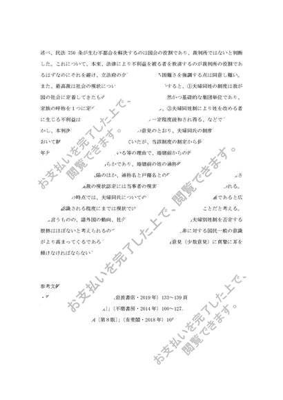 中央大学法学部 通信課程【憲法】2020年度 第1課題 合格レポート「夫婦同氏制」