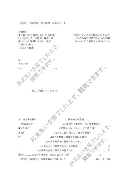中央大学法学部 通信課程【法学】2019年度第1課題 合格レポート「最狭義法の「法律」、法律の憲法適合性」
