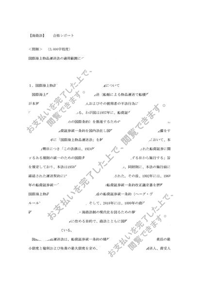 中央大学法学部 通信課程【海商法】合格レポート: 国際海上物品運送法の適用範囲