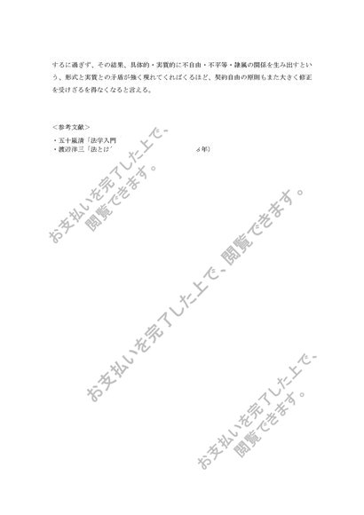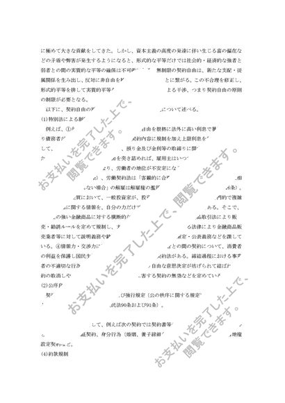 中央大学法学部 通信課程【法学】「契約自由の原則と、その制限」2020年度 合格レポート〔評価:B〕