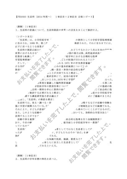〈明星通信〉生活科 PB1030 1単位目+2単位目セット 合格レポート