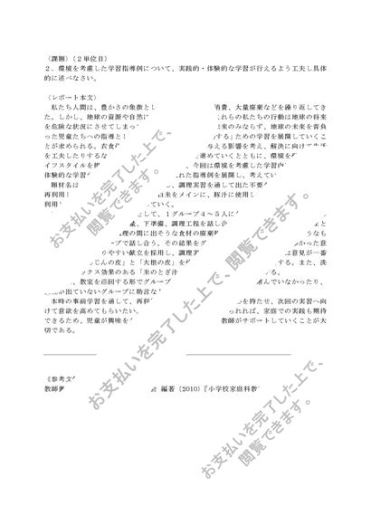 〈明星通信〉初等家庭科教育法 PB3050 1単位目+2単位目セット 合格レポート