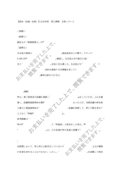 中央大学法学部通信課程【商法(総論・総則)】2020年度 第2課題 合格レポート B評価