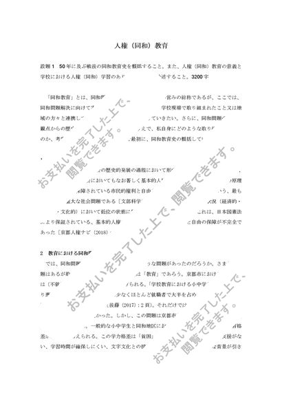 人権(同和)教育 最新レポート 50年に及ぶ戦後の同和教育史を概括すること。また、人権(同和)教育の意義と学校