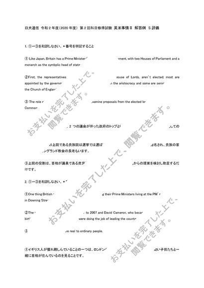 日大通信 令和2年度(2020年度) 第2回科目修得試験 英米事情Ⅱ 解答例 S評価