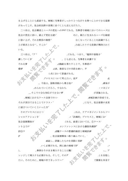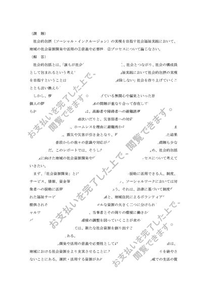 (優)社会的包摂の実現を目指す社会福祉実践において地域の社会資源開発や活用の意義や必要性、プロセスについて