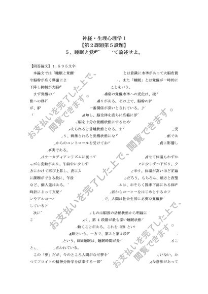 【聖徳大学】神経・生理心理学I 第1課題第5設題 評価A