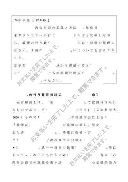 明星大学 2019 [PA3140] 教育相談の基礎と方法① コメント付き