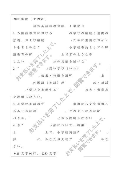 明星大学 2019 [PB2155] 初等英語科教育法① コメント付き