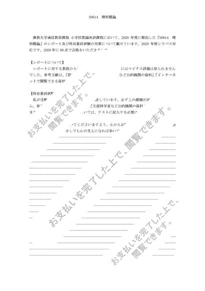 2020年度対応 佛教大学 S0614 理科概論 合格レポート+科目最終試験80点合格解答例