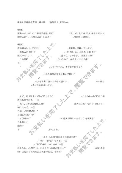 明星大学 通信「幾何学2 PF2040」 科目終了試験① 合格答案