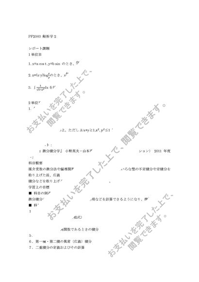 明星大学 通信 「PF2060 解析学2 1単位目+2単位目 2020年度」 合格レポート