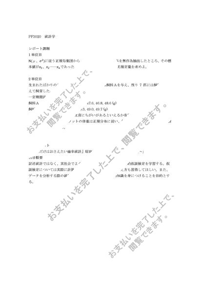 明星大学 通信 「PF3020 統計学 1単位目+2単位目 2020年度」 合格レポート