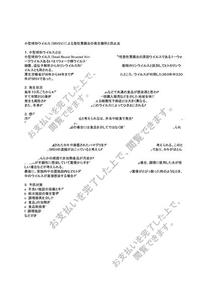 小型球形ウイルスによる急性胃腸炎の発生機所と予防