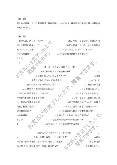 【優評価】私たちが所属している基礎集団・機能集団について述べ、現代社会の集団に関する特徴を考察しなさい。
