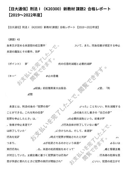 【日大通信】刑法Ⅰ(K20300)新教材 課題2 合格レポート 【2019~2022年度】