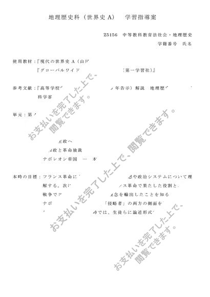 佛教大学 Z5156 中等教科教育法社会・地理歴史 第1設題 指導案