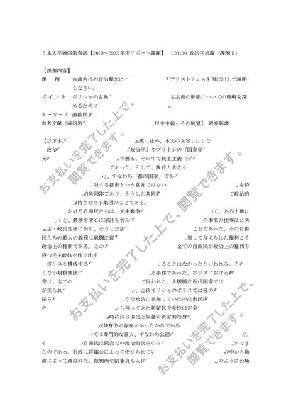 【日本大学通信教育部リポート課題】政治学原論(課題1)