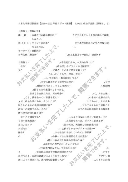 【日本大学通信教育部リポート課題】政治学原論(課題1、課題2)セット