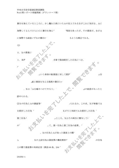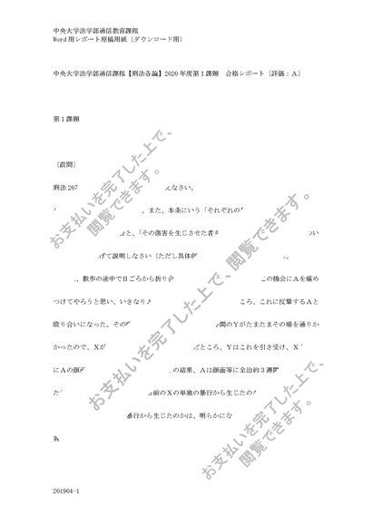 中央大学法学部通信課程【刑法各論】2020年度第1課題 合格レポート〔評価:A〕