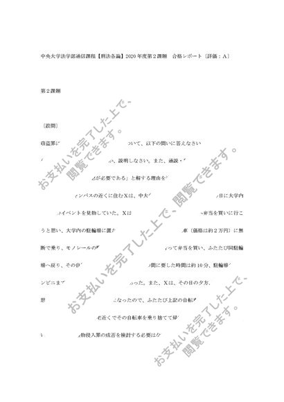 中央大学法学部通信課程【刑法各論】2020年度第2課題 合格レポート〔評価:A〕