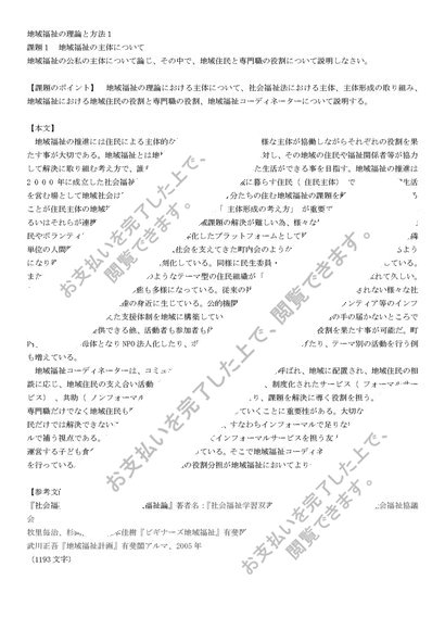 社会福祉士 通信課程 地域福祉の主体について 地域福祉の理論と方法
