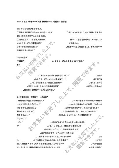 2020年秋期 情報サービス論 【情報サービス論】第1回課題