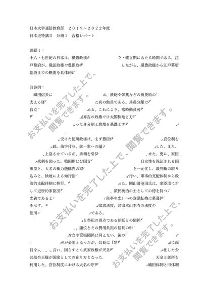 【日大通信】日本史特講Ⅱ 分冊1(2019~2022年)合格レポート
