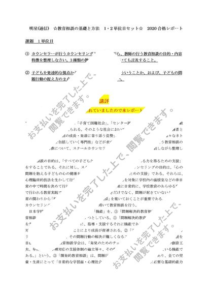 明星(通信) ☆教育相談の基礎と方法 最新合格レポート(優判定)2単分セット 講評付き