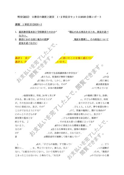 明星(通信) ☆教育の制度と経営 最新合格レポート(優判定) 2単分セット 講評付き
