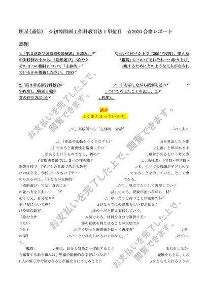 明星(通信) ☆初等図画工作科教育法1単位目 (優判定) 最新合格レポート講評付き