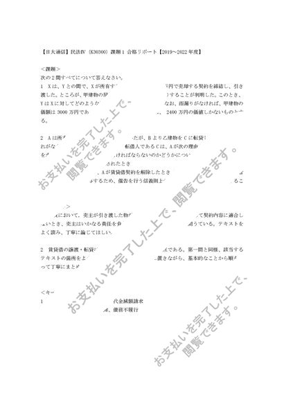 【日大通信】民法Ⅳ(K30300)課題1 合格リポート【2019~2022年度】