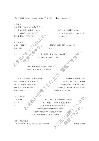 【日大通信】民法Ⅳ(K30300)課題2 合格リポート【2019~2022年度】