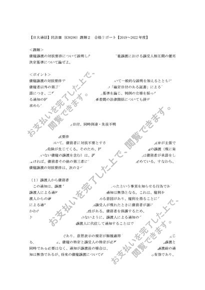 【日大通信】民法Ⅲ(K30200)課題2 合格リポート【2019~2022年度】