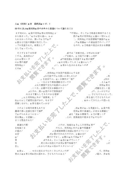 人権(同和)教育 最終試験レポート 佛教大学【P5581/2020年】