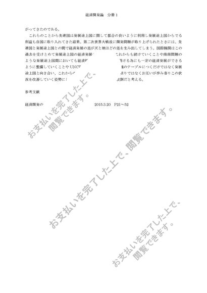 日大通信 経済開発論 分冊2 合格レポート 【旧教材】