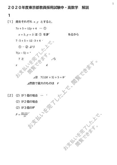【教採解説】【数学】東京都2020年度(2019年度実施)