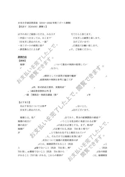 【日本大学通信教育部リポート課題】民法V(課題1)