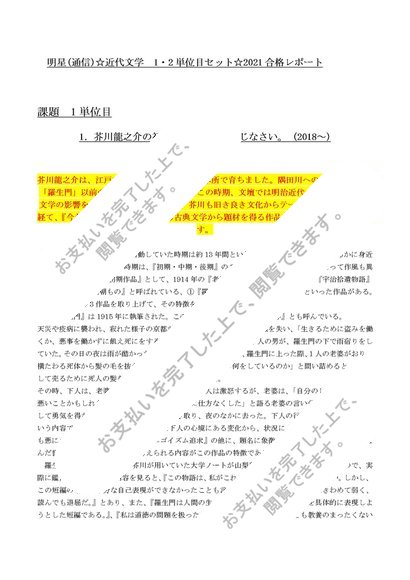明星(通信)☆近代文学 最新合格レポート(優判定) 2単分セット 講評付き