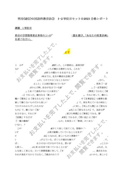 明星(通信) ☆ 国語科教育法③ 最新合格レポート (優判定) 2単分セット 講評付き