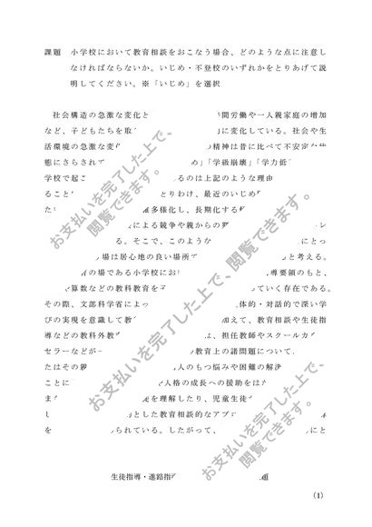 生徒指導・進路指導の研究(初等・小学校)2026年 佛教大学通信 受理 80点