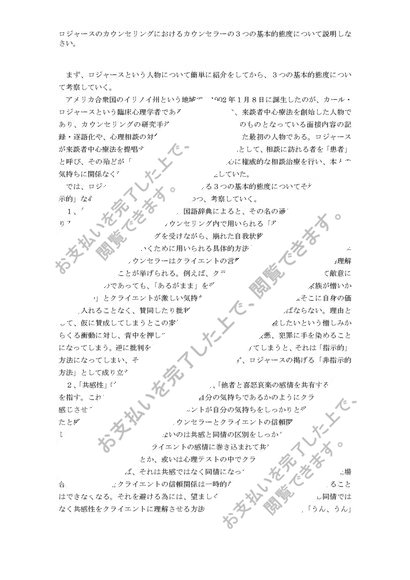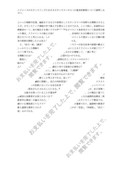 聖徳大学 臨床心理学Ⅰ 評価A 「ロジャースのカウンセリングにおけるカウンセラーの3つの基本的態度について説明しなさい」