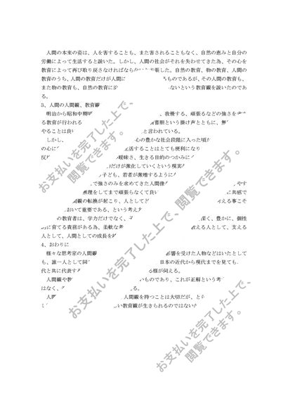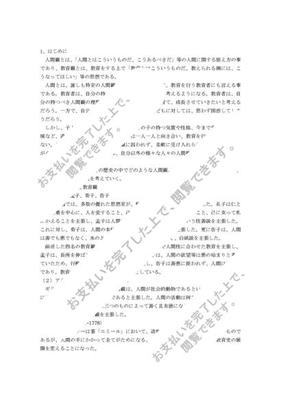 教育原理Ⅰ 評価B 「テキストをよく理解した上で、人間観が教育観に及ぼす影響について論じなさい」