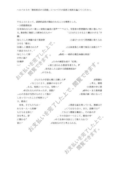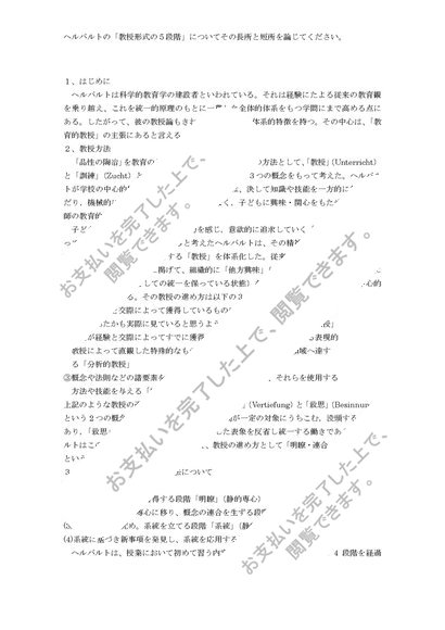 教育方法論 第一課題・第一設題 評価S {ヘルバルトの「教授形式の5段階」について、その長所と短所を論じてください}}