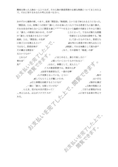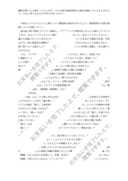 教育史Ⅰ 第一課題 評価A {興味を持った人物を一人とりあげ、その人物の教育思想の主要な特徴についてまとめた上で…