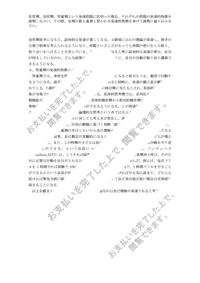 発達心理学 第二課題 評価A 各年齢の発達的特徴について