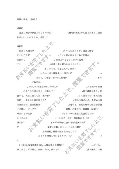 東北福祉大通信 福祉心理学2単位目 【評価:良】