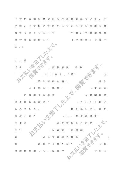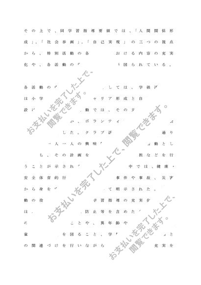特別活動の指導法「特別活動の歴史からみた特質について、小学校、中学校いずれかについてその変遷を概観するとともに、平成29